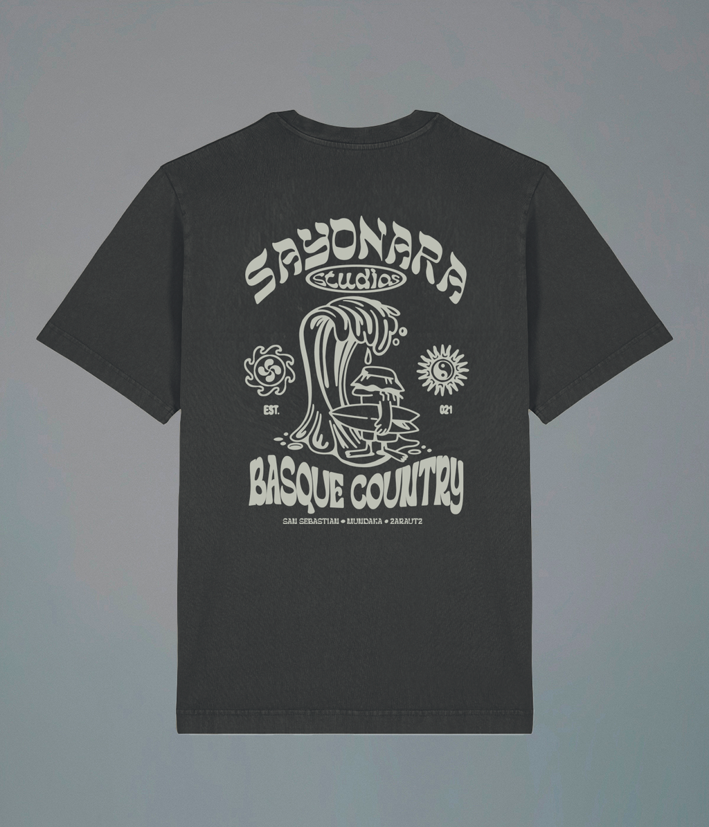 If you visit some of the beaches in the Basque Country, you'll see they're just as good as those on the California coast. Surfing and good vibes are what this illustration conveys, combining the well-known Yin and Yang symbol...